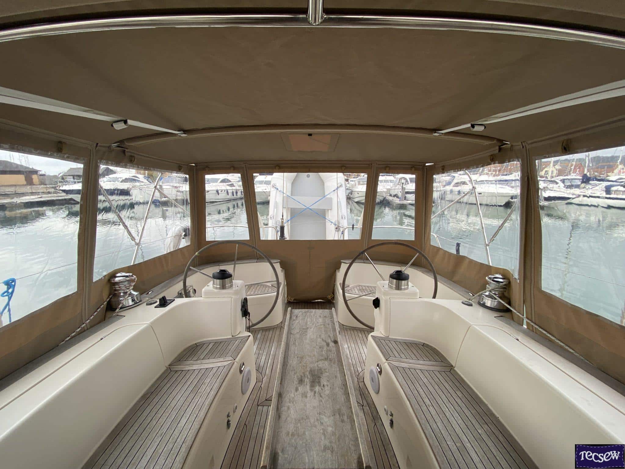 Click to view Moody 45 Classic Cockpit Enclosure with optional window blinds
