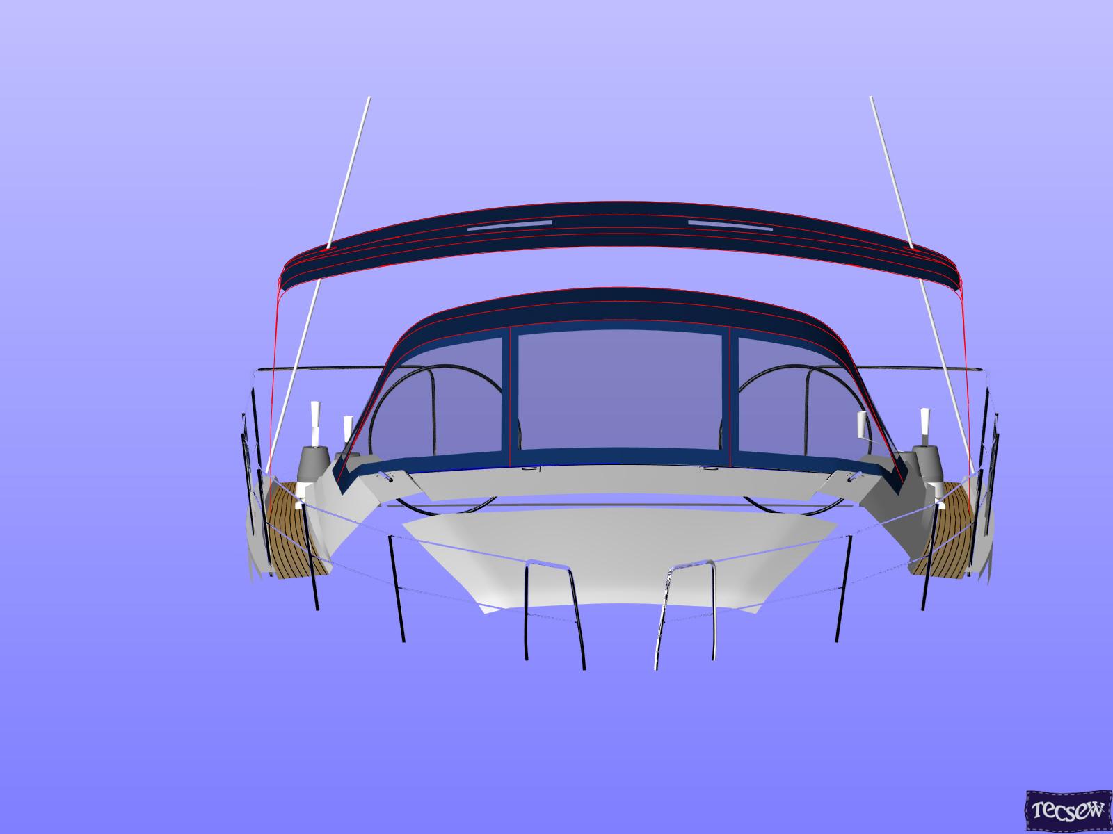5 bar Bimini with 32mm 316 Stainless Steel frames. This Bimini features a heavy-duty frame and aft extension and has been designed with our in-house developed Parametric Design Software.
