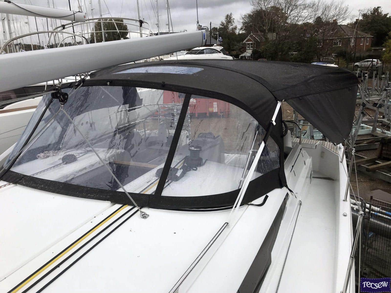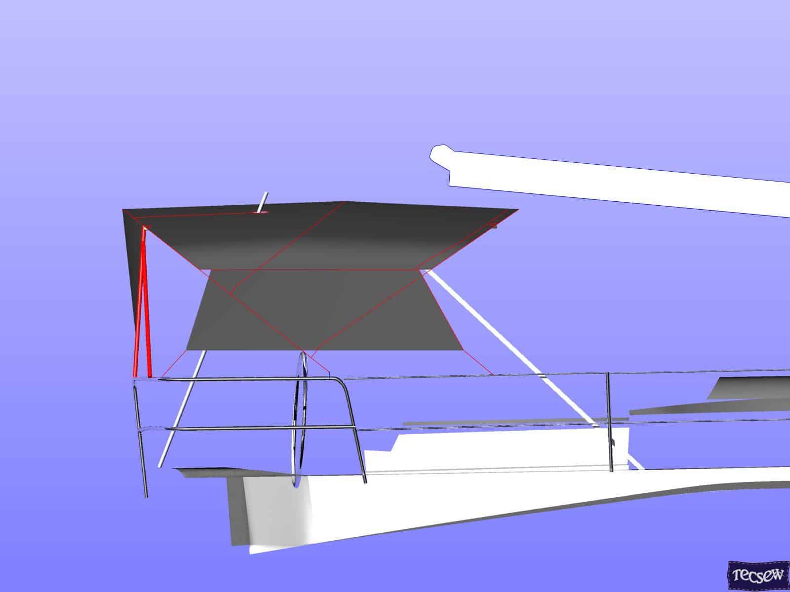 Jeanneau Sun Odyssey 490 Bimini, Side Shade Panels and Sprayhood Connection Panel, ref 9770 Bimini Brochure Bimini Conversion Brochure Tecsew Brochure Jeanneau Sun Odyssey 490 Bimini, Side Shade Panels and Sprayhood Connection Panel Showing tension struts Bimini Fwd bar can be folded back, 1 Bimini Fwd bar can be folded back, 2