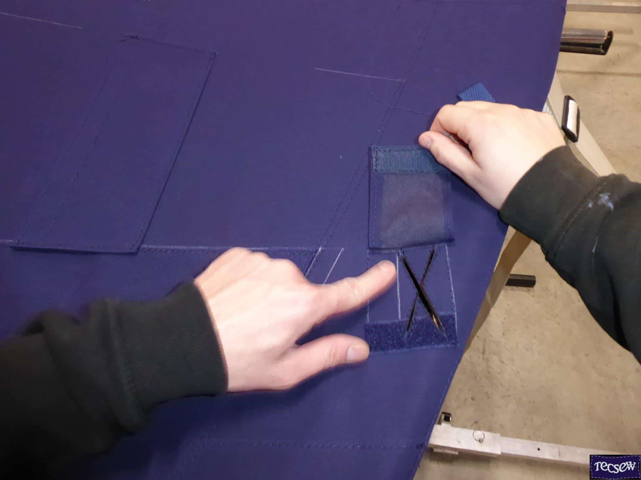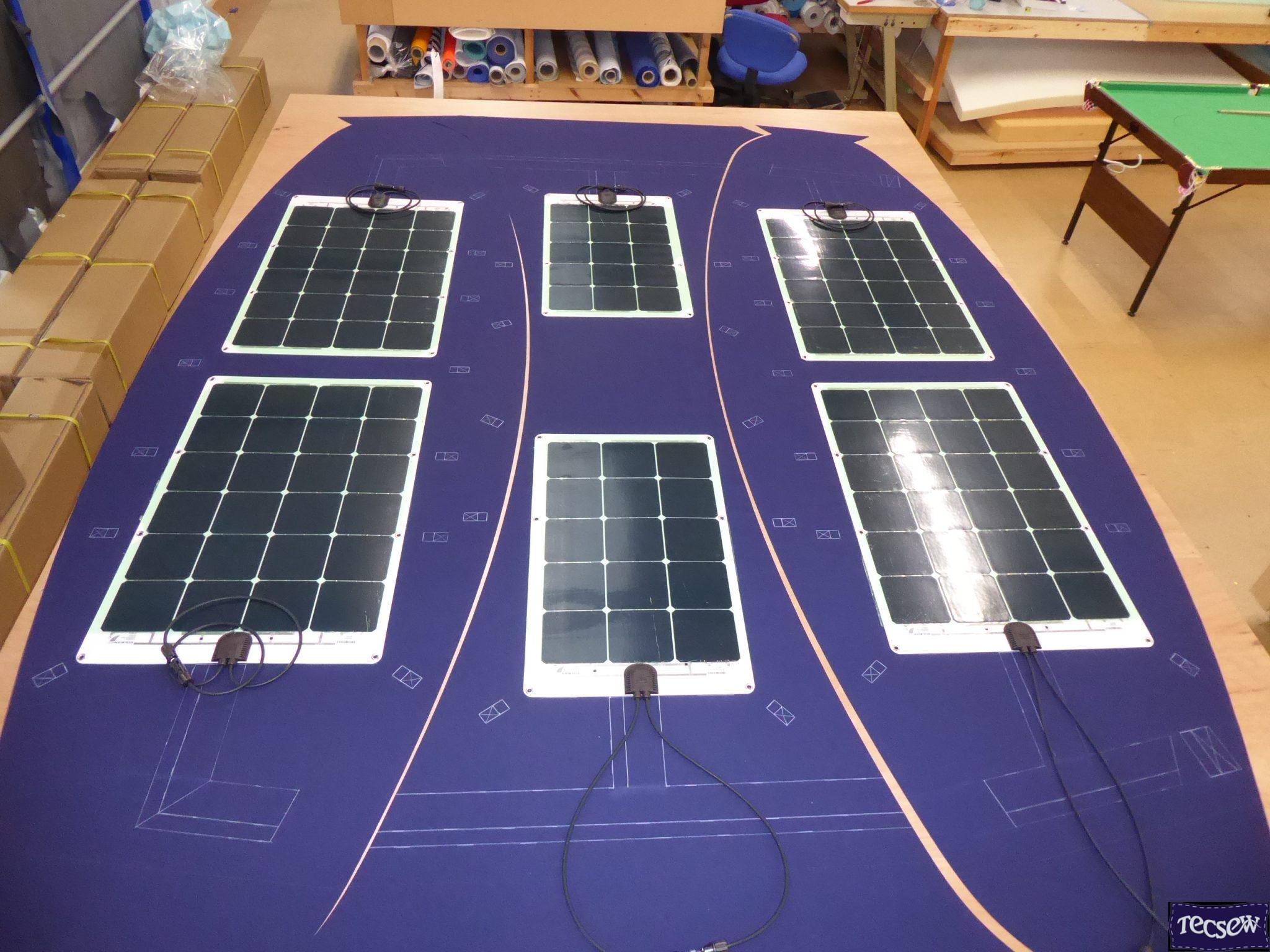 This Bimini features optional Soltis 86 Shade Mesh Side Shade Panels and is also fitted for Solar panels with webbing loops and flaps to conceal wiring. The last 2 photos show the work involved at the prep stage.