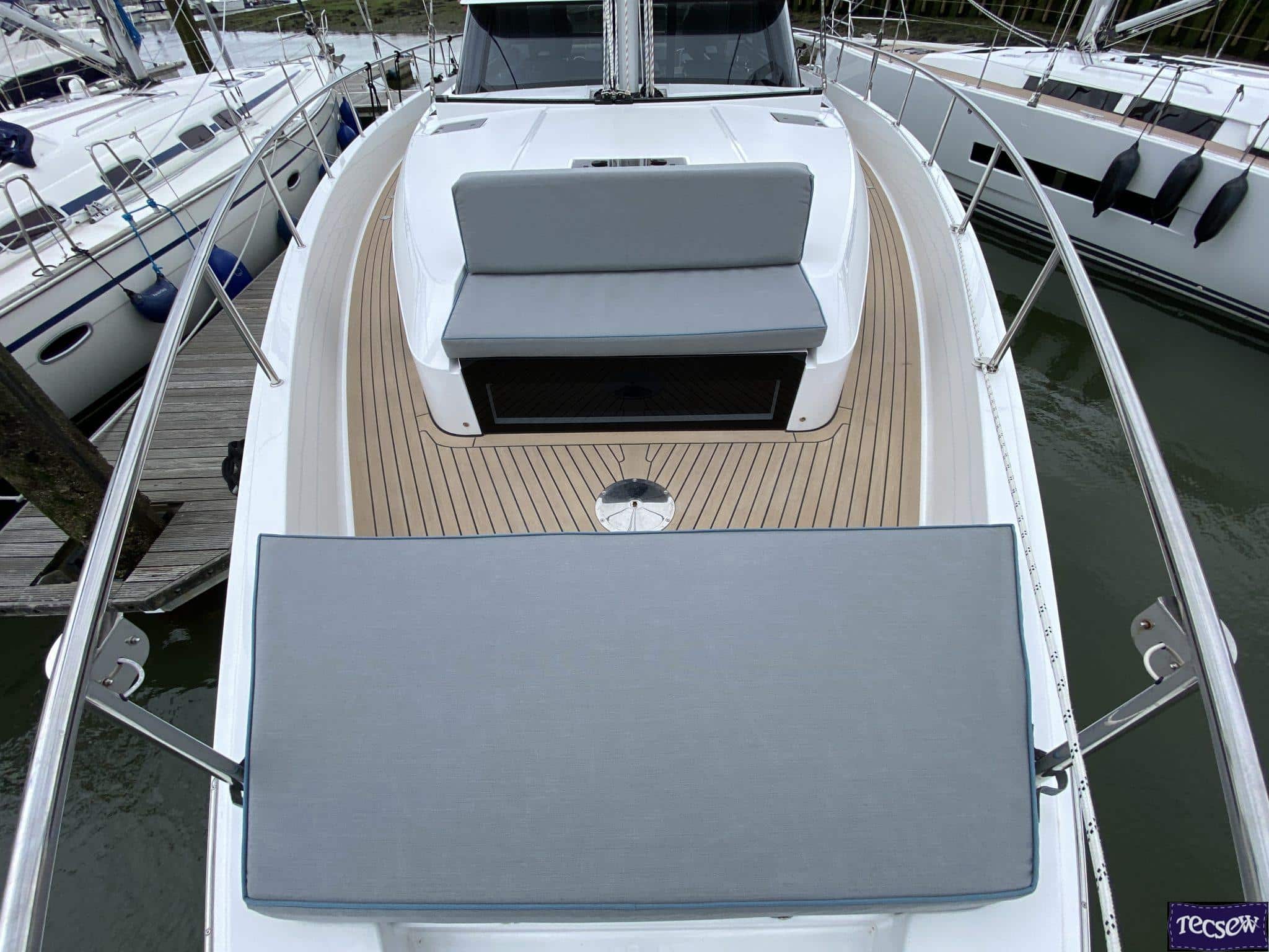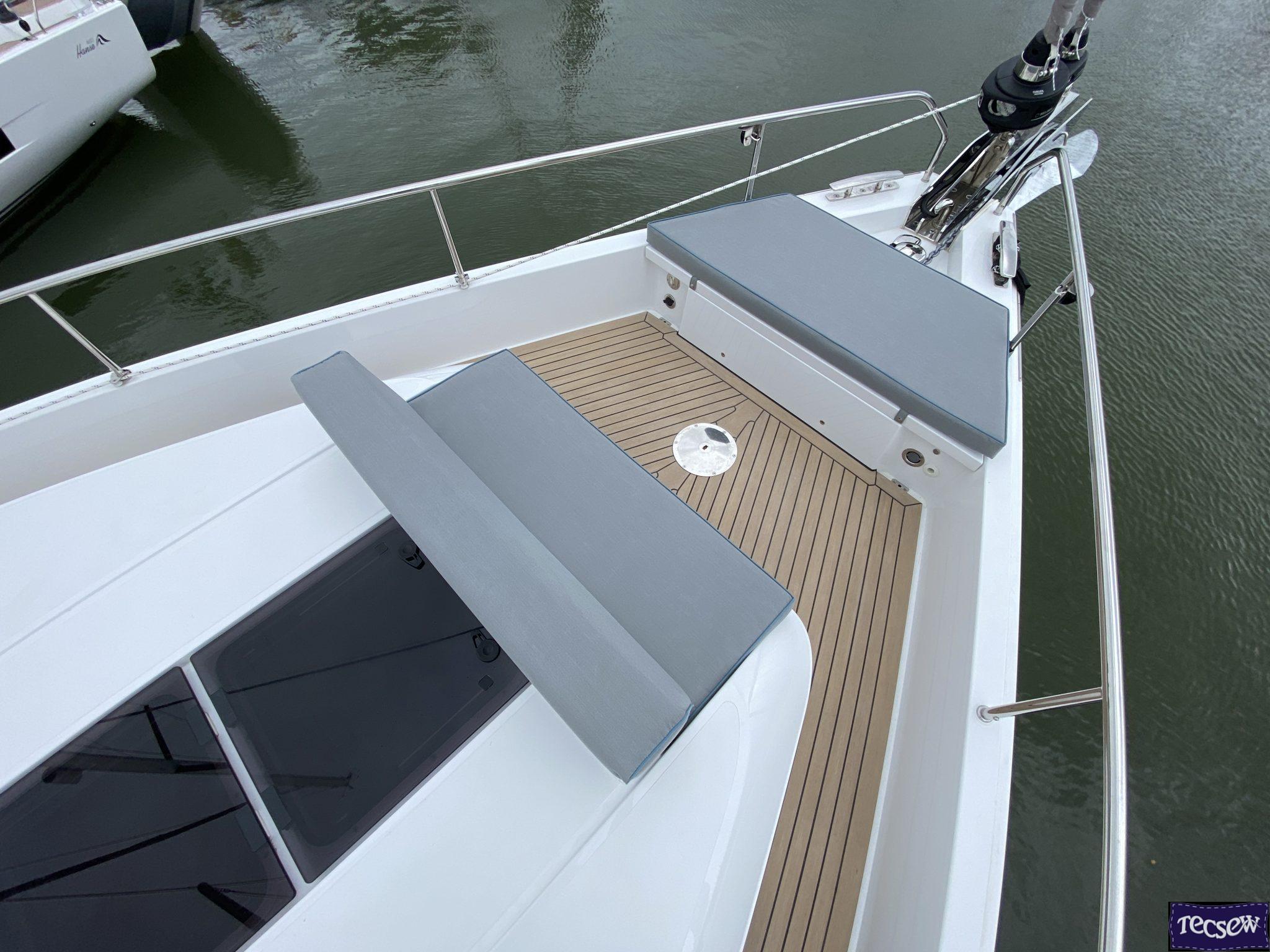 Tecsew’s custom Bow Seating and Backrest cushions for the Moody 48 DS provide premium comfort, exceptional durability, and a touch of style. With the option of contrast piping, these cushions are designed to enhance both the aesthetics and functionality of your yacht.