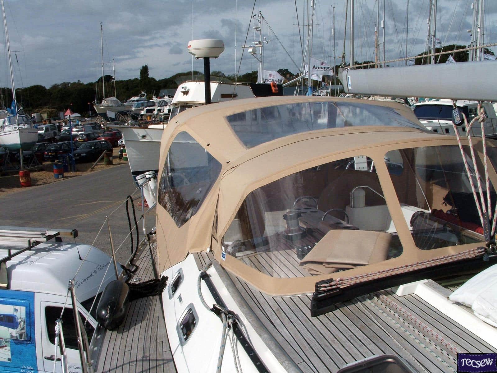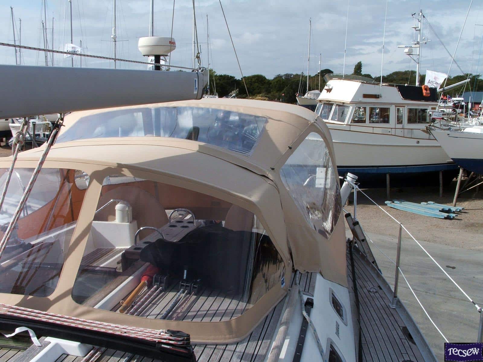 Click to view Jeanneau Sun Odyssey 45.2, Cockpit Enclosure fitted to recover of standard NV Sprayhood, SEASAW