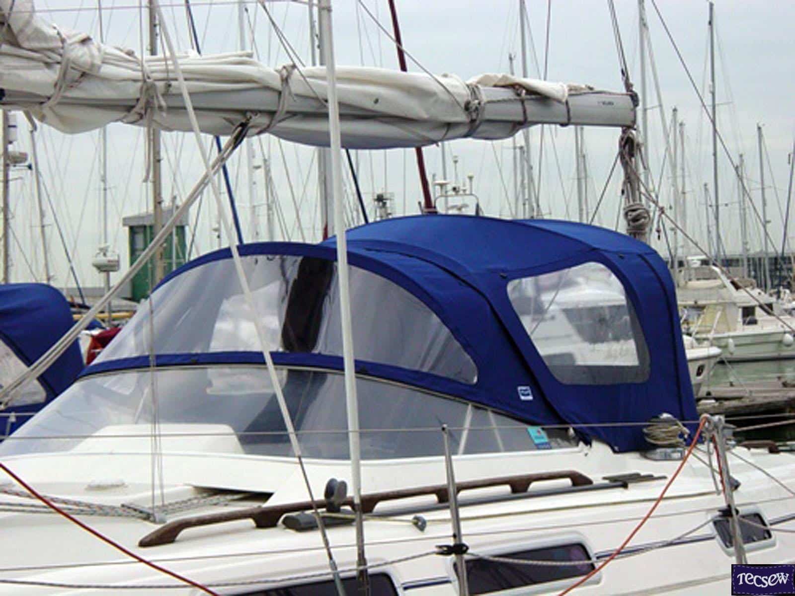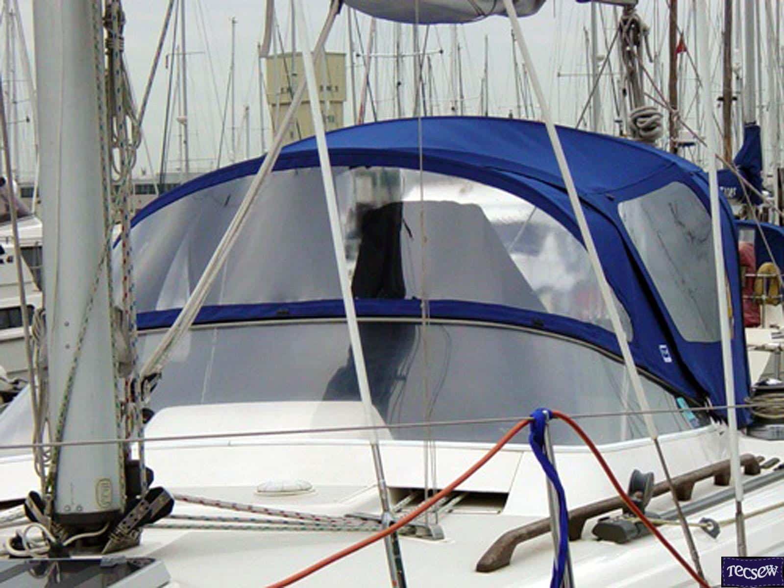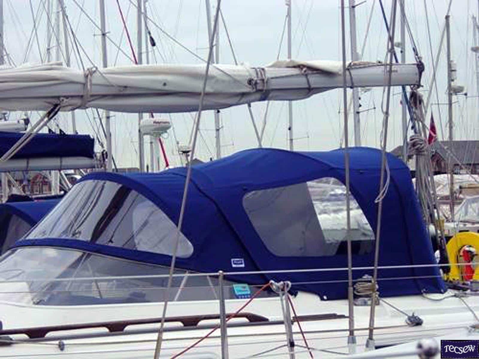Click to view Moody 36 fixed screen Cockpit enclosure, Moody Blue