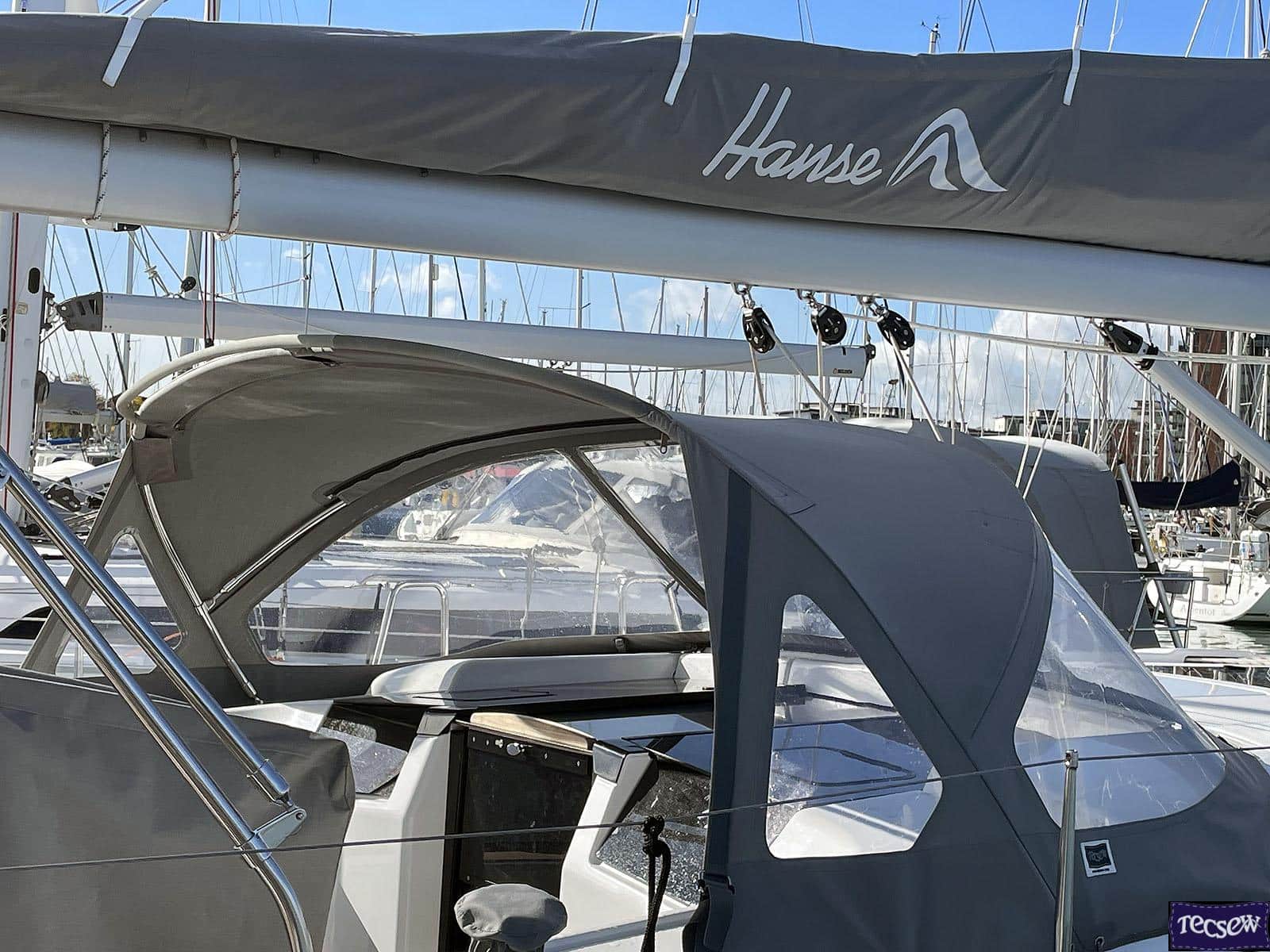 Hanse 388 Stackpack Shown with Optional Sign Writing